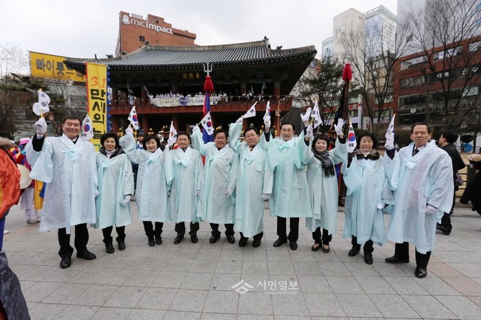 [시민일보=이대우 기자]지난 1일 김복동 서울 종로구의장과 구 의원들이 인사동 남인사마당 야외무대에서 개최된 '제96주년 3·1만세의 날 거리축제'에 참석했다.