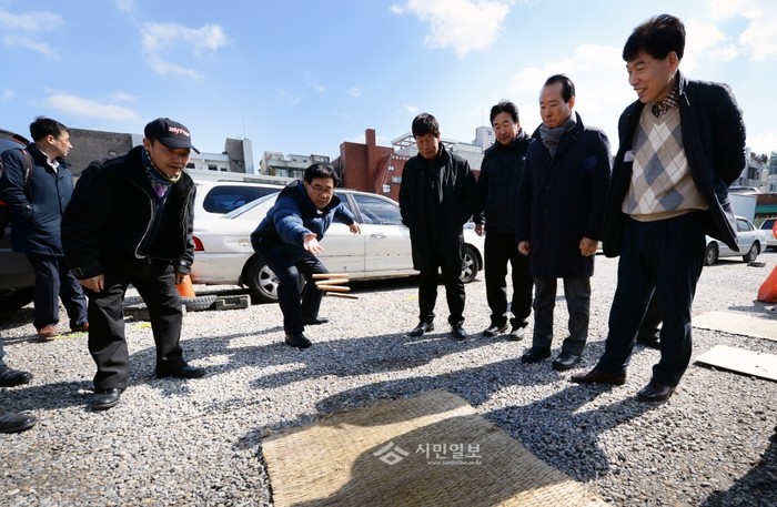 서울 동대문구에 위치한 서울약령시협의회가 지난 4일 정월대보름을 앞두고 한방산업진흥센터 건립부지에서 정월대보름 민속놀이 행사를 개최했다. 이날 행사에서는 대보름맞이 윷놀이, 제기차기 등 흥겨운 민속놀이 한마당이 펼쳐졌다. 사진은 행사에 참석한 유덕열 구청장이 윷놀이를 하고 있는 모습. (사진제공=동대문구청)