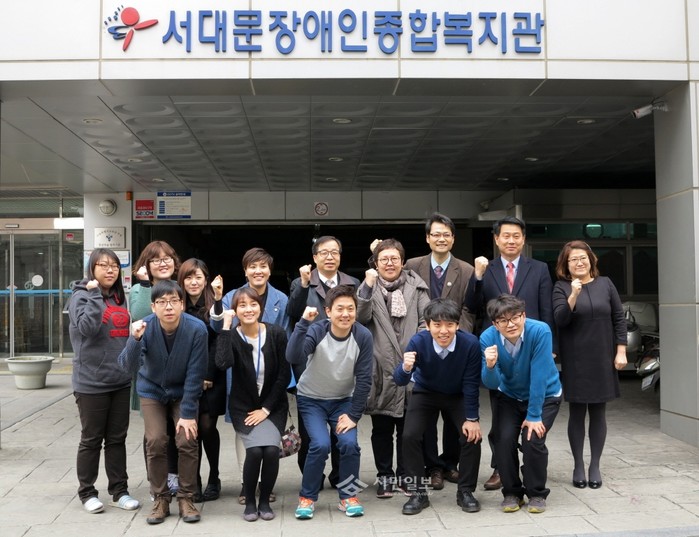 | ▲ 서대문장애인종합복지관을 방문한 서대문구의회 행정복지위원회 위원장 및 위원들이 복지관 관계자들과 함께 기념촬영을 하고 있다.(사진제공=서대문구의회) |