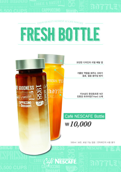 감각적인 디자인의 카페네스카페 보틀은500mL 용량이 1만원에 판매되며 카페네스카페 가맹점에서 구매 가능하다.