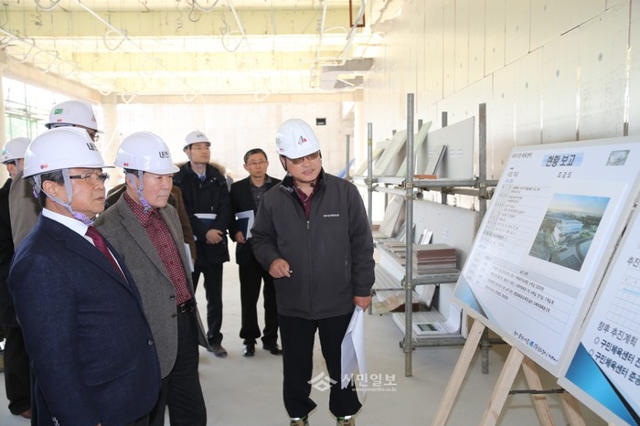 박홍섭 서울 마포구청장과 차재홍 마포구의회의장은 최근 마포구민체육센터 공사현장을 방문해 현장 관계자들로부터 공사추진 현황을 보고받고 공사장 안전 등의 현장점검에 나섰다. 사진은 공사현장을 방문하고 있는 모습. (사진제공=마포구청)