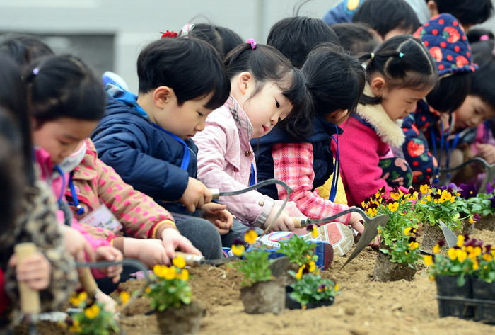 "튼튼하게 자라렴"… 봄꽃심는 어린이들