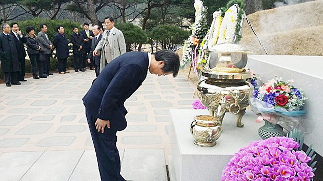 4.29 국회의원 보궐선거 광주 서구을 지역구에 무소속으로 출마한 천정배 후보는 17일 오전 이희호 여사와 함께 국립 현충원 김대중 전 대통령 묘소를 찾아 참배했다. 참배에 앞서 천 후보는 방명록에 ‘두렵다고 주저앉아 있으면 아무 것도 변화시킬 수 없다는 대통령님 말씀을 깊이깊이 가슴에 새깁니다’라는 글을 남겼다.