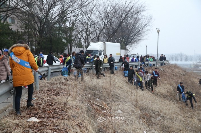인천 서구청이 18일 '새봄맞이 환경정비 추진운동'을 통해 동절기 생활주변에 적치된 쓰레기를 치우고 깨끗한 도시환경을 조성하는 대청소를 진행했다. 청소에는 공무원, 통반장, 주민 등 1000여명이 참여해 생활쓰레기를 수거했다. 사진은 환경정비 참여자들이 쓰레기를 줍고 있는 모습. (사진제공=서구청)