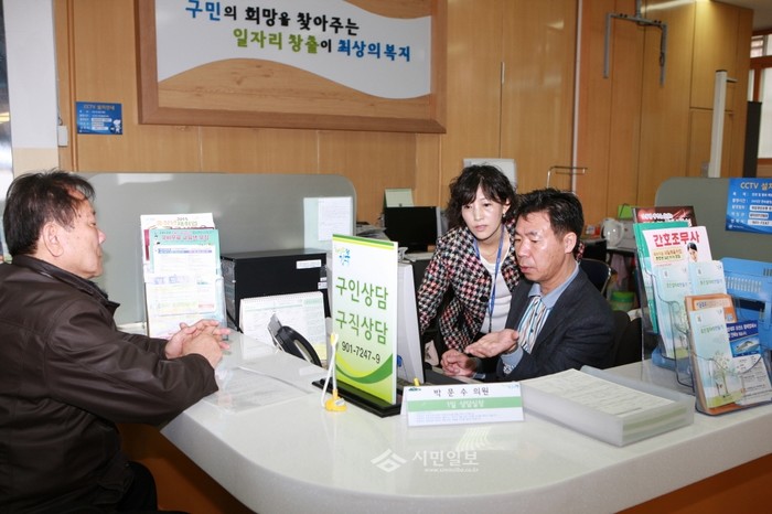 우선 이날 구청 일자리추진팀장으로부터 취업정보은행 운영현황에 대한 주요현안 및 업무보고를 청취하고, 직업상담사 3명과 함께 취업상담을 업무를 개시했다.