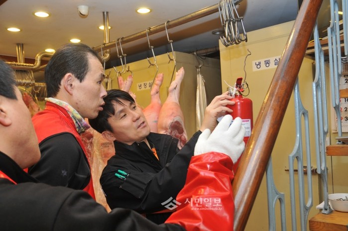 서울 관악소방서는 18일 관악구에 위치한 중부시장에서 화재발생시 초기 소화를 목적으로 소화기 50대를 설치하고, 시장 관계자들에게 '소화기 점검요령'을 교육했다. 사진은 한 소방관이 시장 상인들에게 소화기 점검요령을 설명하고 있는 모습. (사진제공=관악소방서)