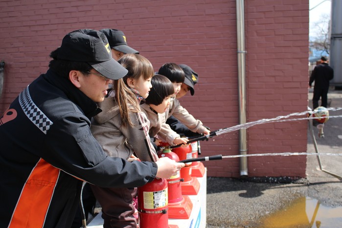 인천 강화소방서가 지난 20일 마니산유치원 원생들을 대상으로 '열린 소방서'를 운영했다. 이날 행사에서는 어린이들이 소방안전교육의 일환으로 소화기 사용법을 직접 체험해 배웠다. 사진은 마니산유치원 원생들이 소방관들과 함께 소화기 사용법을 배우고 있는 모습. (사진제공=강화소방서)