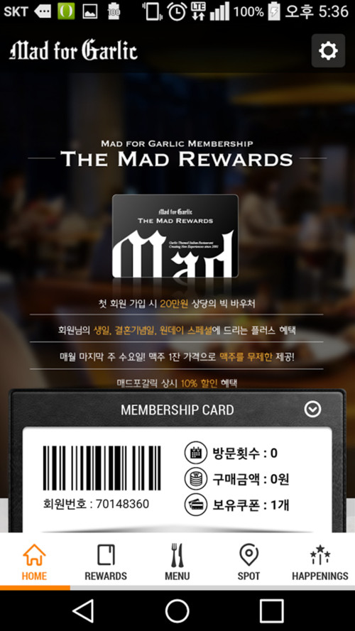 매드포갈릭 고객만을 위해 새롭게 선보이는 온라인·모바일 멤버십 서비스 ‘더 매드리워즈(THE MAD REWARDS)’는 오늘부터 매드포갈릭 홈페이지(www.madforgarlic.com)와 모바일용 매드포갈릭 어플을 다운로드 받아 가입 가능하다. 모바일용 매드포갈릭 어플의 안드로이드 버전은 구글 플레이스토어(https://play.google.com/store/apps/details?id=com.madforgarlic.app)에서 바로 다운로드 가능하며, 올 상반기 내 iOS 버전이 추가로 출시 예정이다.