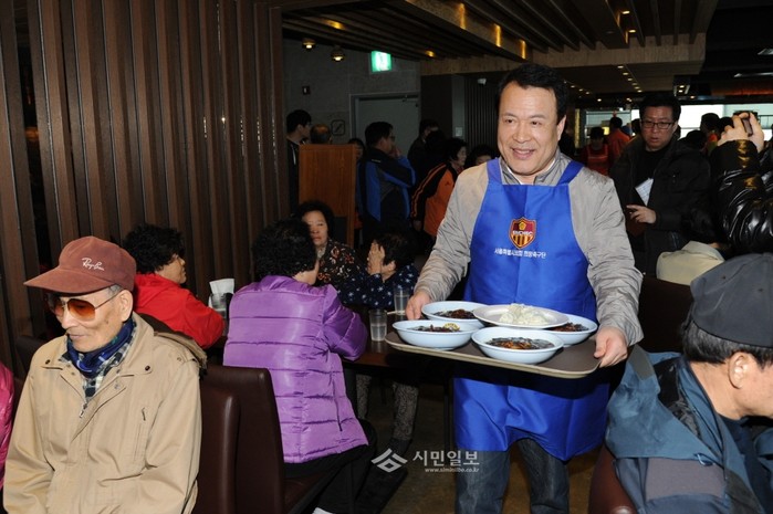 [시민일보=이대우 기자]서울시의회 희망축구단 동호회(회장 신언근 의원) 회원 20여명이 지난 24일 오전 구로구 소재 베르누이호텔 2층에서, 홀몸노인 등 430여명의 노인들에게 사랑의 자장면을 대접하는 시간을 갖는 등 봉사활동에 적극 나서 눈길을 끌고 있다.