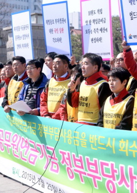 25일 오전 서울 종로구 북촌로 헌법재판소 앞에서 열린 대한민국공무원노동조합총연맹의 ‘공무원연금기금 정부부당사용’ 헌법소원 심판청구 기자회견에서 류영록 위원장이 발언을 하고 있다.