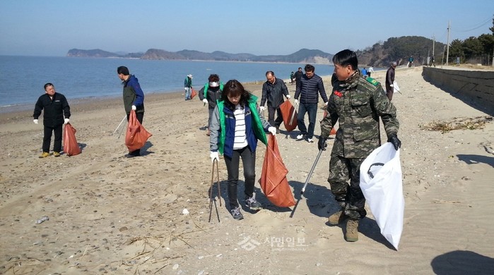 인천 강화군 서도면은 지난 25일 서도를 찾는 관광객들에게 깨끗하고 쾌적한 환경을 제공하기 위해 '새봄맞이 대청결 운동'을 실시했다. 이날 행사는 각종 단체와 지역 주민 50여명이 참석해 해수욕장을 중심으로 환경정화 운동을 펼쳤다. 사진은 참여자들이 해안가에서 쓰레기를 줍고 있는 모습. (사진제공=강화군청)