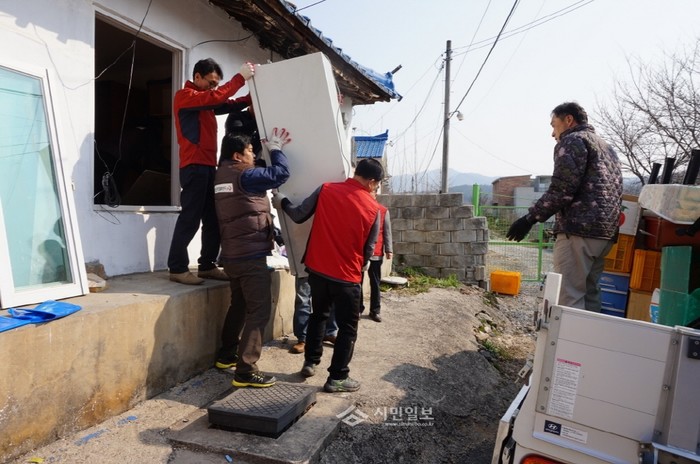 경기 양평군이 지난 28일 양서면에 거주하는 재활대상자 청년의 이사를 돕는 활동을 펼쳤다. 이번 이사에는 양서면 행복돌봄추진단과 양평·양서적십자봉사회, 양평희망나누미에서 인력과 트럭을 지원해 진행됐다. 사진은 이날 이사에 참여한 봉사자들이 냉장고를 나르고 있는 모습. (사진제공=양평군청)