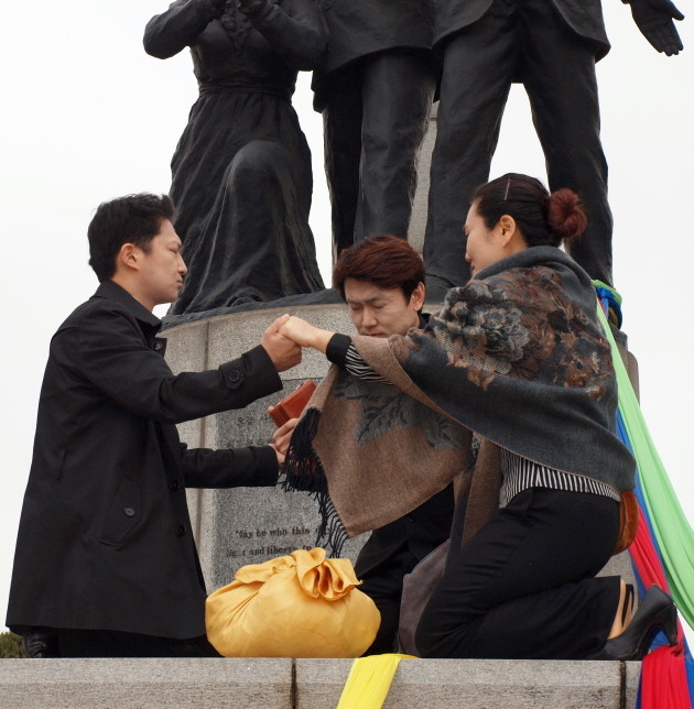 | ▲ 5일 오후 인천 중구 항동 한국기독교 100주년 기념탑에서 열린 '제8회 제물포 문화선교 축제'에서 미국 선교사 아펜젤러와 스크랜턴의 선교 131주년을 기념하는 행사가 열리고 있다. | ||