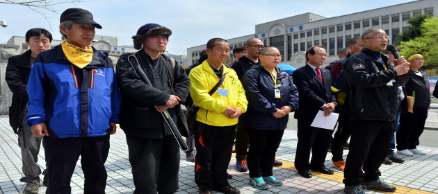 광주지역 시민사회단체와 세월호 희생자 등 가족대책위가 7일 오후 광주 동구 광주고등법원 앞에서 '책임자 처벌 촉구' 기자회견을 열고 있다.