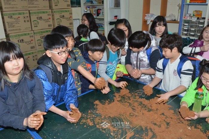 경기 동두천시는 지난 7일 EM센터에서 지행초등학교 5학년3반 학생을 대상으로 'Green 동두천 환경교실'을 실시했다. 사진은 이날 교실에 참여한 학생들이 직접 EM흙공 제작체험을 하는 모습. (사진제공=동두천시)