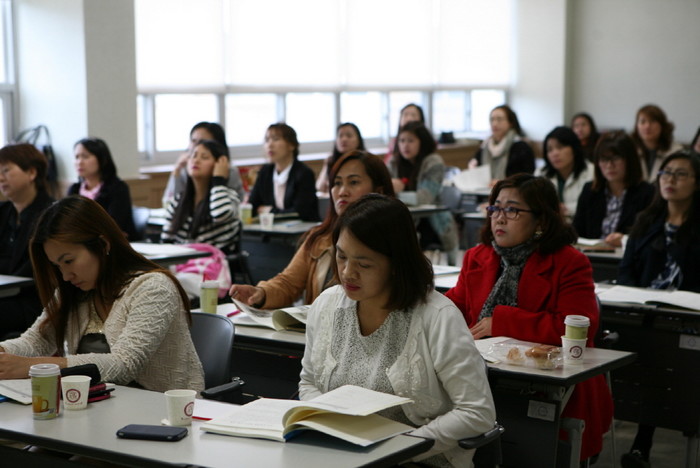 충남교육청은 지난 8일 이주자 강사의 효과적인 활용을 위해 충남외국어교육원에서 다문화가정 이주자 강사 34명을 대상으로 수업전문성 및 정보활용능력 신장을 위한 직무연수를 실시했다. 사진은 이주여성들이 수업을 듣고 있는 모습. (사진제공=충남교육청)