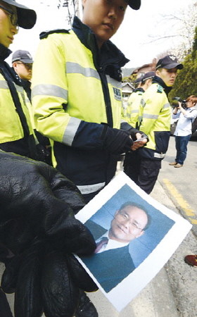 해외 자원개발 비리에 연루 된 의혹으로 사전구속영장이 청구된 성완종 경남기업 전 회장이 9일 오전 유서를 남겨두고 잠적, 경찰들이 성 전 회장의 나눠주고 있다. 한편 경찰의 통신 추적 결과 종로구 평창동에서 휴대전화 신호가 잡혀 경찰이 수색을 하고 있다.