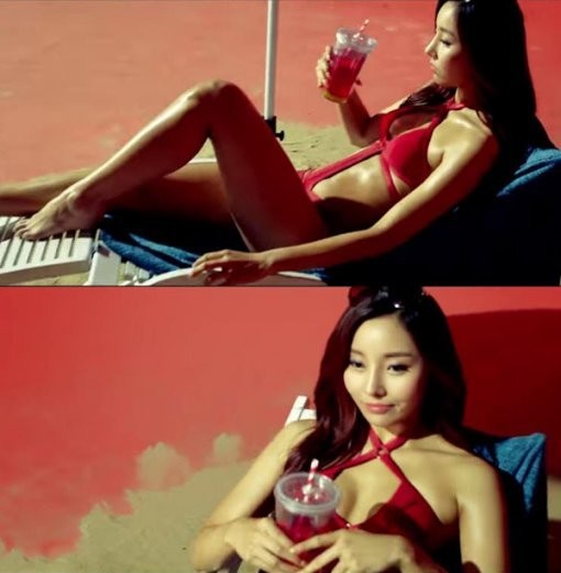 모노키니를 입고 섹시함을 뽐낸 여배우의 정체는 모델 이현지다. 이현지는 2013년 미스 맥심 콘테스트에서 입상한 바 있다.