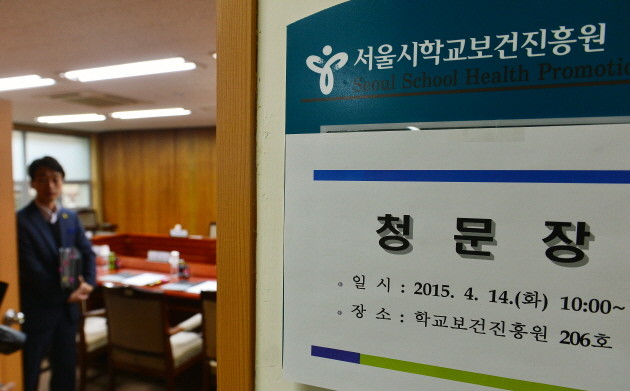 14일 오전 서울 종로구 학교보건진흥원에서 ‘영훈국제중 지정취소’ 관련 청문회가 비공개로 진행되고 있다.