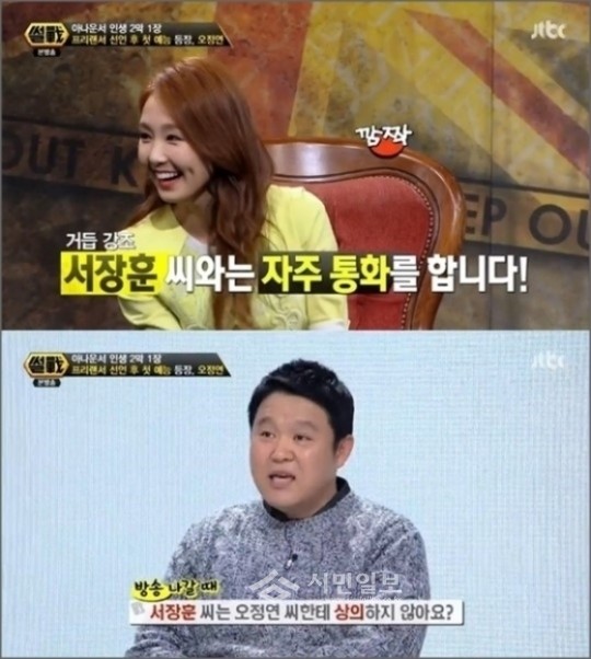 이에 오정연은 당황하지 않고 "요즘도 가끔 방송 출연에 대해 상의하거나 통화로 안부를 묻는 사이"라고 말했다.