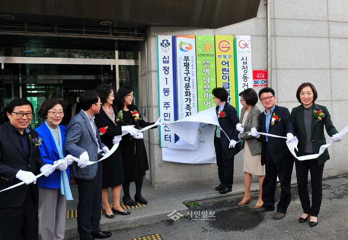 인천 부평구가 지난 20일 십정1동 주민센터에서 '다문화가족지원센터 개소식'을 진행했다. 사진은 이날 참여한 관계자들이 현판식을 진행 중인 모습. (사진제공=부평구청)