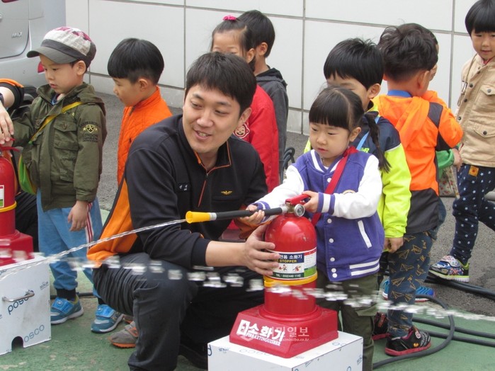 유치원생들 물소화기 사용체험