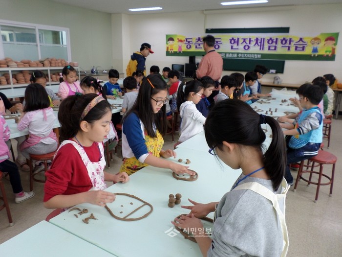 인천 연수구 동춘3동 주민자치위원회가 최근 지역내 초등학생 32명을 대상으로 인성도예원에서 '어린이 현장체험 학습'을 진행했다. 사진은 이날 도예원에서 어린이들이 직접 찰흙으로 작품을 만들고 있는 모습. (사진제공=연수구청)
