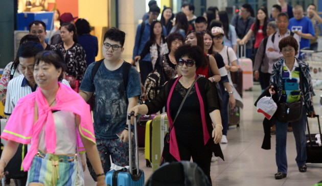 중국의 황금연휴인 노동절(5월 1일)을 하루 앞둔 30일 오후 한국을 찾은 중국인 관광객들이 밝은 모습으로 인천국제공항을 나서고 있다.