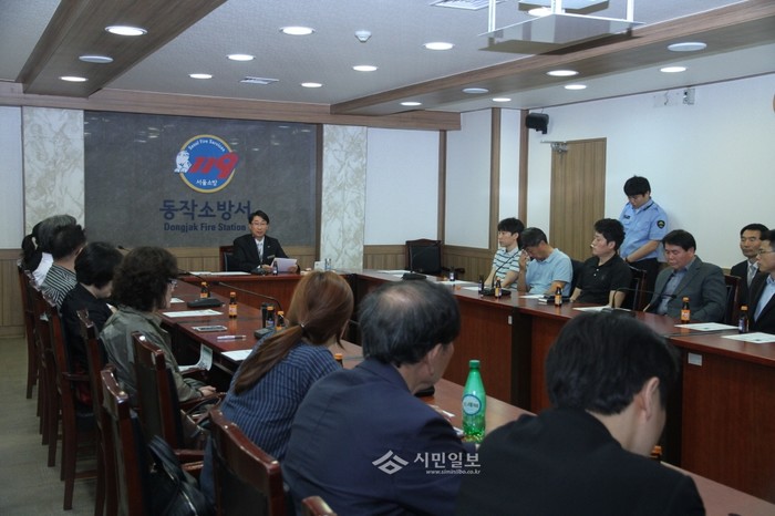 서울 동작소방서가 지난달 30일 오후 2시 동작소방서 2층 소회의실에서 '학원 관계자 간담회'를 실시했다. 사진은 이날 참석한 관계자들이 '학원 소방안전에 관한 간담회'를 진행 중인 모습. (사진제공=동작소방서)