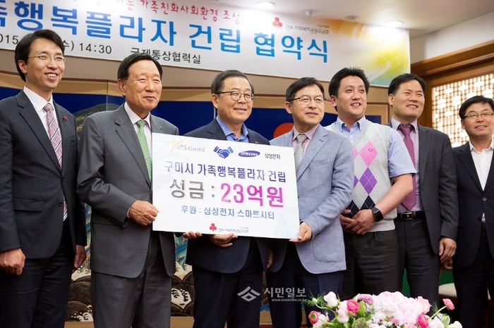 이 23억원의 성금은 삼성전자스마트시티 임직원들이 모은 성금으로 조성됐으며, 가족행복플라자 건립·운영은 일자리를 찾아 젊은 인구 유입이 많은 도시, 어린 자녀를 양육하는 가정이 많은 젊은 도시인 구미시의 정주여건을 높이고 가족의 행복한 삶을 보장하는 '구미형 가족정책사업'으로 민·관 공동협력 지역복지정책의 새로운 모델이 될 것으로 기대되고 있다.