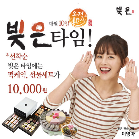 ‘빚은 타임’ 은 ‘빚은’ 의 ‘빚’에서 따온 ‘ㅣ’ 와 ‘은’에서 따온 ‘ㅇ’ 에서 착안해, 매월 10일 오전 10시부터 빚은 쇼핑몰(www.bizeun.co.kr)에서 다양한 떡 케익과 선물세트를 한정된 수량만큼 1만원에 제공하는 타임 이벤트다.