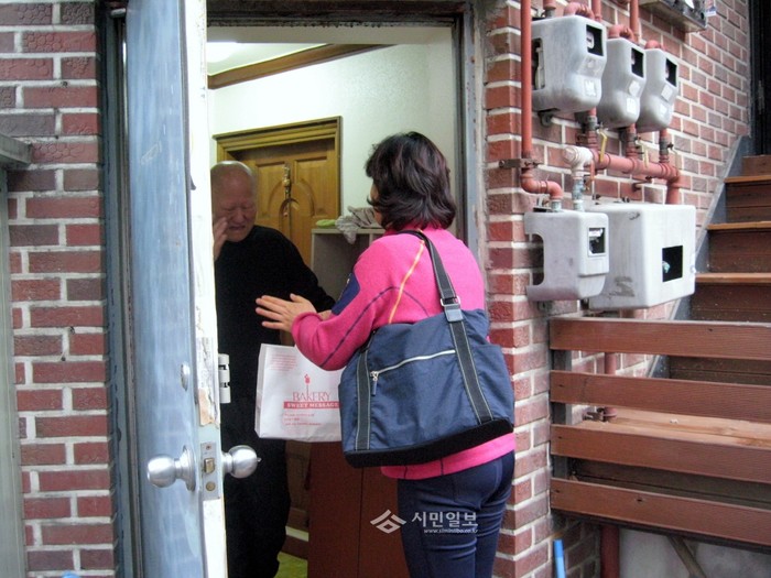 | ▲ 홍제1동은 당뇨병을 앓고 있는 지역내 노인을 지원해 건강상태를 크게 호전시켰다. 사진은 김씨의 집을 방문한 동 관계자의 모습.(사진제공=서대문구) | ||