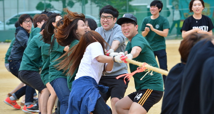 서울 종로구 성균관대학교에서 최근 열린 '경영대 체육대회'에서 참가 학생들이 줄다리기를 하고 있다. /뉴시스