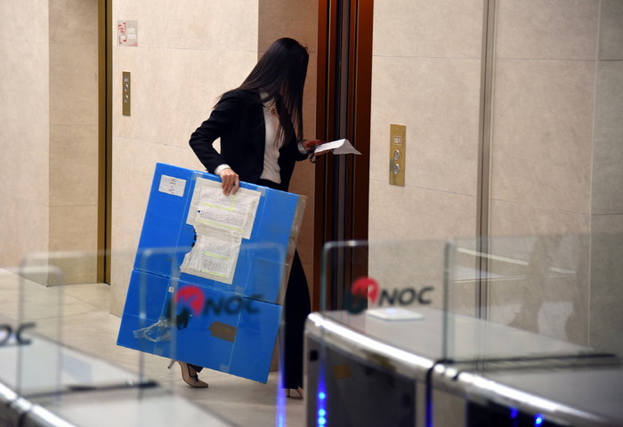| ▲ '해외자원개발 비리'를 수사 중인 검찰이 12일 울산 중구 한국석유공사 본사를 압수 수색하고 있다./뉴시스 | ||