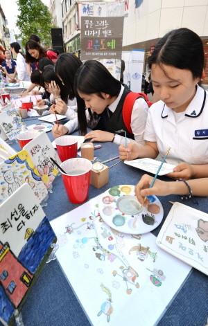 최근 대구 중구 동성로 야외무대에서 열린 대구시 중학교 자유학기제 전면 시행 선포식에서 중학생들이 도자기 핸드페인팅으로 자신의 진로를 그려보고 있다./뉴시스