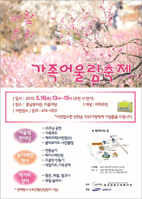 복지관 관계자는 “이번 행사를 통해 풍납동 지역주민에게 다양한 문화와 체험을 제공하고, 가족 간의 화합과 사랑을 확인하는 시간을 가짐으로써 지역사회 건강한 가족복지의 기반을 마련하는 기회의 장이 될 것으로 기대하고 있다”라고 말했다.