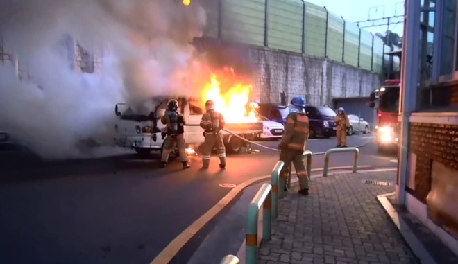 화재는 오전 5시25분에 완진됐다. 차량이 불에 탔으나 다행히 인명피해는 없었다.