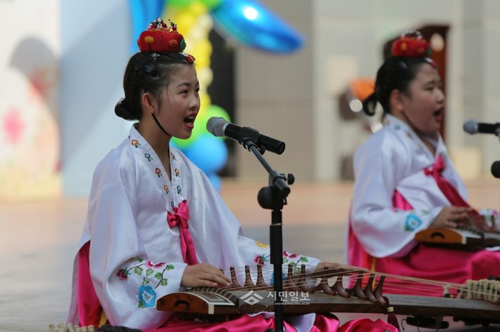 경기도이천교육지원청은 최근 이천 설봉공원내 대공연장에서 '2015 이천 학생문화예술 어울림 한마당'을 개최했다. 사진은 한복을 입은 학생들이 무대에서 공연을 펼치고 있는 모습. (사진제공=경기도교육지원청)