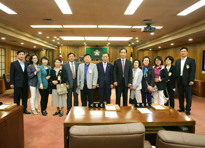 서울 서대문구 연희동 주민자치위원회는 최근 서대문구의회에서 열린 제215회 임시회 개회식에 참석해 의사진행 과정을 방청한 후 지역구 의원인 김호진 의회운영위원장, 이기수 재정건설위원장과 간담회를 갖고 지역현안문제에 관해 이야기를 나눴다. 사진은 임시회 후 기념촬영 모습. (사진제공=서대문구의회)