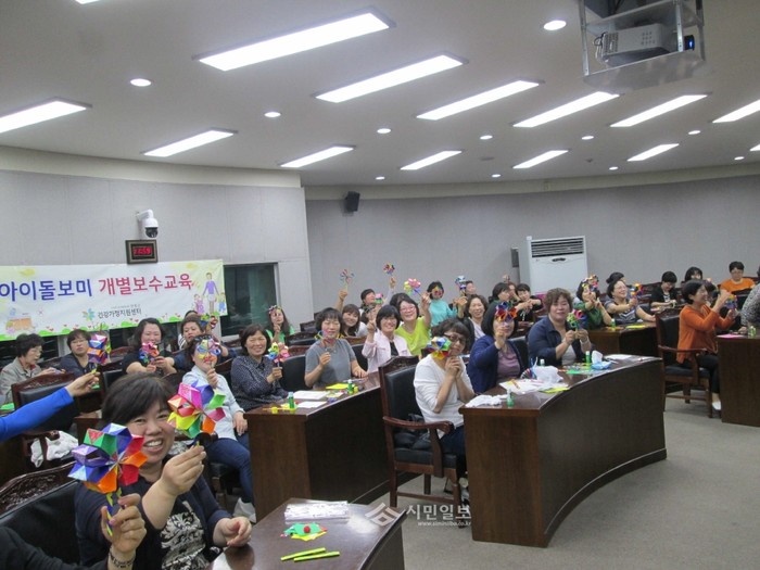 경기 양평군 건강가정지원센터가 최근 돌봄 활동가들의 능력을 향상시켜 아동의 발달 특성에 맞는 서비스를 제공하는 개별보수교육을 실시해 참여 돌보미들이 기념촬영을 하고 있다. (사진제공=양평군청)
