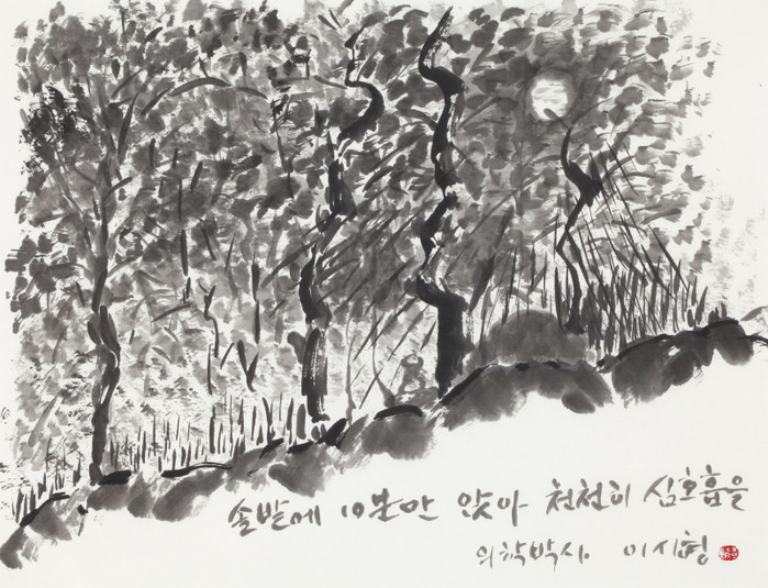 이시형 의학박사는 힐리언스 선마을 촌장, 세로토닌 문화원 이사장 등을 비롯해 문인화 화가로 활동 중이며, 이번 전시회에서 힐리언스 선마을의 자연을 담은 그림과 ‘솔밭에 10분만 앉아 천천히 심호흡을’ 등의 힐링 메시지가 담긴 문인화 37점을 선보인다. 문인화는 전문 화가가 아닌 순수 문인이 먹으로 단순하게 그린 후 엷게 채색하는 그림을 말한다.