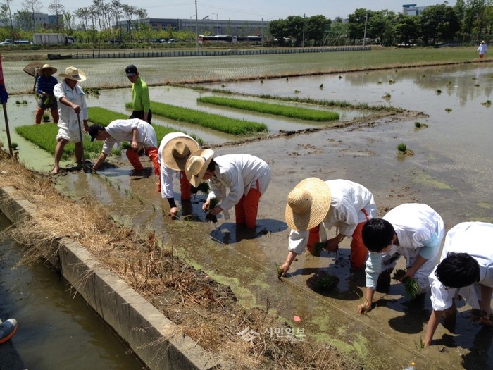 수원 권선구, 고현초교 옆 들판서 '전통 손 모내기'
