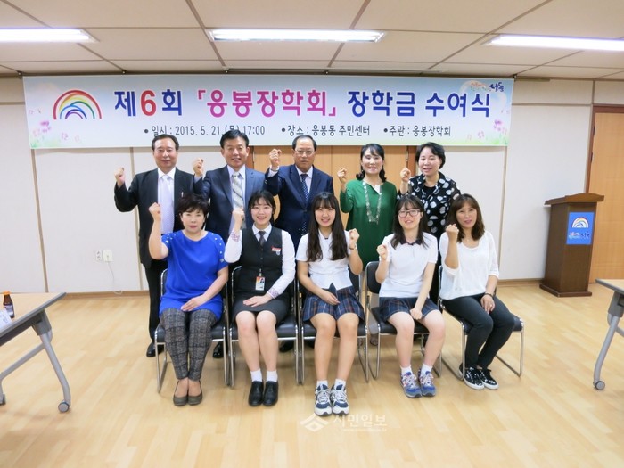 서울 성동구 응봉동 응봉장학회가 최근 주민센터 3층 다목적방에서 제6회 장학금 수여식을 열었다. 사진은 응봉장학회 장학금 수여식에서 기념사진을 촬영하고 있는 모습.(사진제공=성동구청)