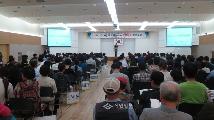 서울 은평구는 최근 은평홀에서 복지위원과 복지두레회원 300여명을 대상으로 역량강화 보수교육을 성황리에 개최했다. 사진은 지역내 동별 위원들이 참석한 가운데 역량강화 보수교육이 진행되고 있는 모습.(사진제공=은평구청)