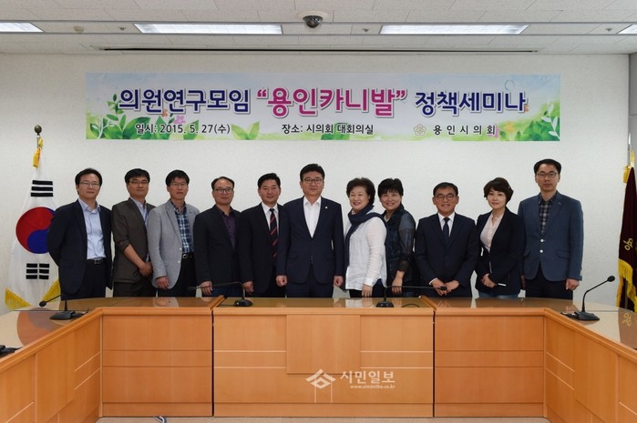 경기 용인시의회 의원연구단체 '용인 Carnival'이 27일 의회 대회의실에서 2015 용인 카니발 용인 대표축제 추진방향을 주제로 세미나를 개최해 연구단체 의원들과 문화관광과 공무원, 관계 전문가 등이 기념촬영하고 있다.
