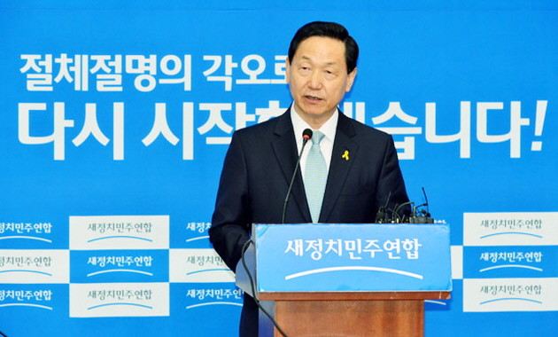 새정치민주연합 김상곤 혁신위원장이 27일 오전 서울 여의도 국회에서 기자회견을 열고 당 혁신 등에 대한 자신의 생각을 전하고 있다.