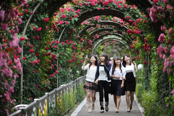 | ▲ 서울 중랑구가 이달 29~31일 중랑천 장미터널 일대에서 '서울장미축제'를 개최한다. 사진은 2012년에 개최된 장미축제에서 장미를 구경하고 있는 참가자들의 모습.(사진제공=중랑구청) | ||