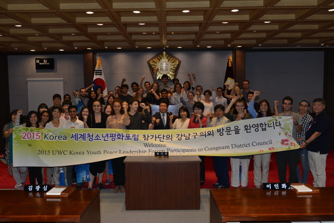 이날 견학은 오는 30일까지 열리는 ‘2015 세계평화 청소년 리더십 포럼 at DMZ’ 행사 참가 세계 각국 청소년들에게 글로벌 강남을 알리고 선진의정 현장 체험 기회를 제공하기 위해 마련된 것으로, 김명옥 의장, 윤선근 부의장, 이재민 운영위원장, 문백한 의원 등이 참석했다.
