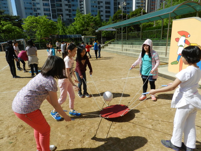 경기 부천시 석천초등학교가 최근 학생 스스로 계획하고 구성해 프로그램을 진행하는 '자기주도적 학생문화예술 진로 자율동아리'를 운영해 학생들이 동아리 활동으로 공놀이를 하고 있다.(사진제공=부천교육지원청)