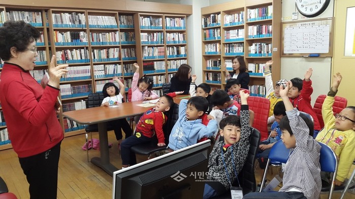 | ▲ 자양2동 새마을작은도서관에서 '영·유아 독서 프로그램'이 운영 중인 모습. (사진제공=광진구청) | ||